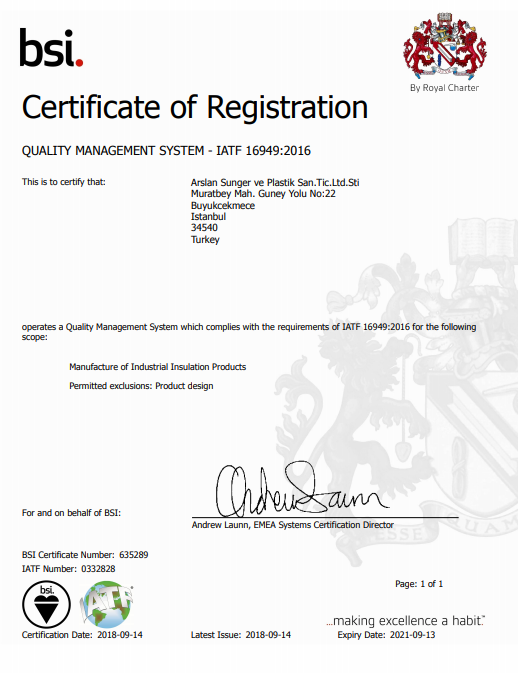IATF 16949 Otomotiv için Kalite Yönetim Sistemi belgesini aldık.